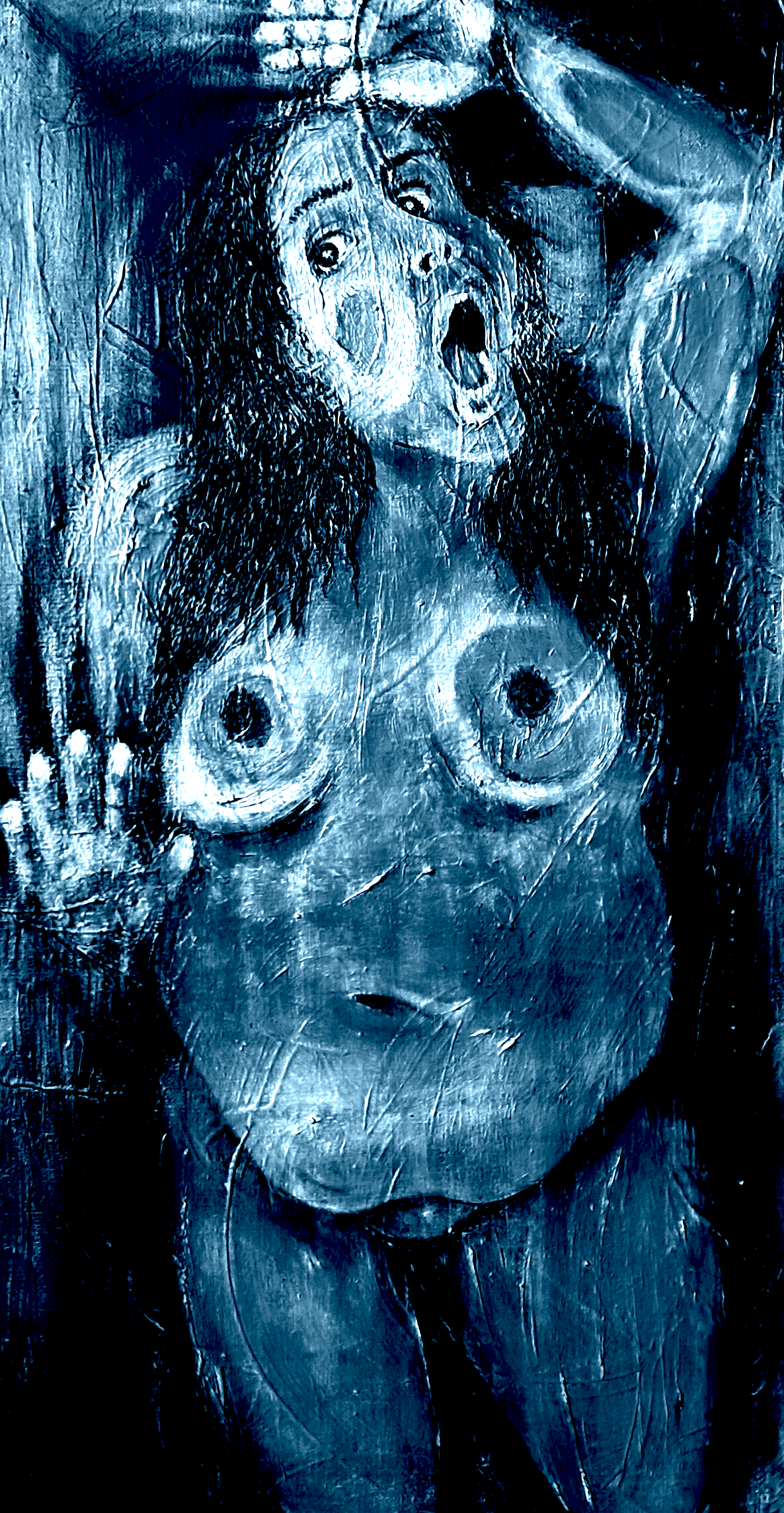 Freedom has always been imprisoned and tortured. I wanted to show the different punishments that freedom has endured. Blue is the frozen, silenced version of our freedom.